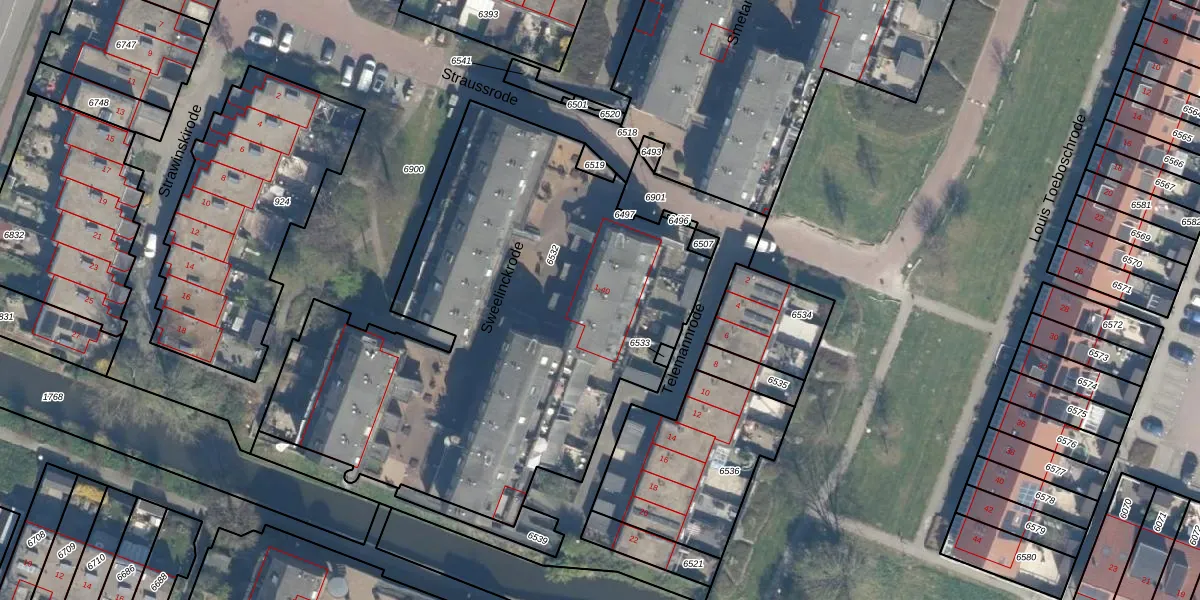Het perceel waarop Sweelinckrode 6 staat heeft een oppervlakte van 2839 m². Dit is een zeer groot perceel. De perceeloppervlakte wordt geregistreerd door het Kadaster. Gedetailleerde informatie over de maten van dit perceel kunt u vinden in het rapport Kadastrale kaart met maatvoering van Sweelinckrode 6.