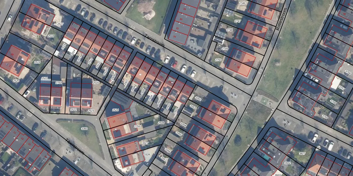 Gebruik de zoekbalk of klik op een perceel voor informatie over de adressen binnen dit perceel.