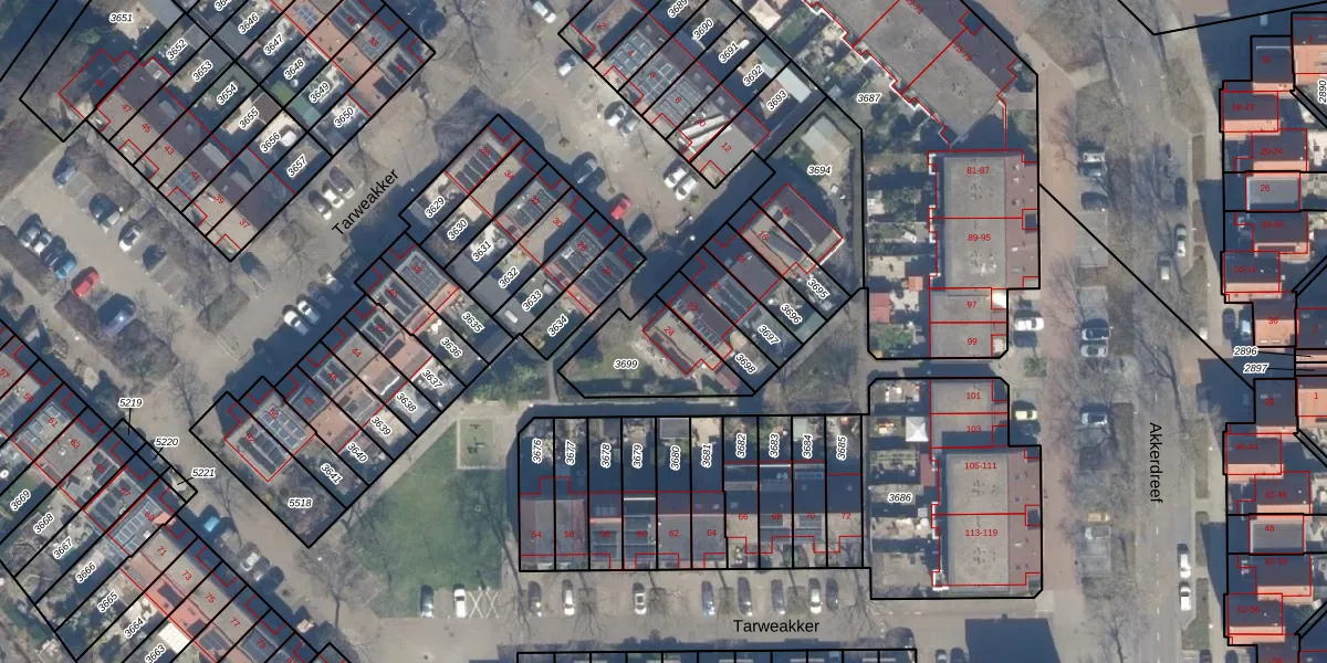 Gebruik de zoekbalk of klik op een perceel voor informatie over de adressen binnen dit perceel.