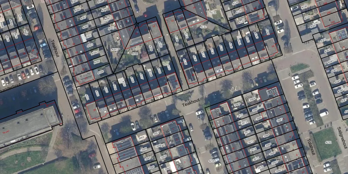 Het perceel waarop Teakhout 44 staat heeft een oppervlakte van 140 m². Dit is een middelgroot perceel. De perceeloppervlakte wordt geregistreerd door het Kadaster. Gedetailleerde informatie over de maten van dit perceel kunt u vinden in het rapport Kadastrale kaart met maatvoering van Teakhout 44.