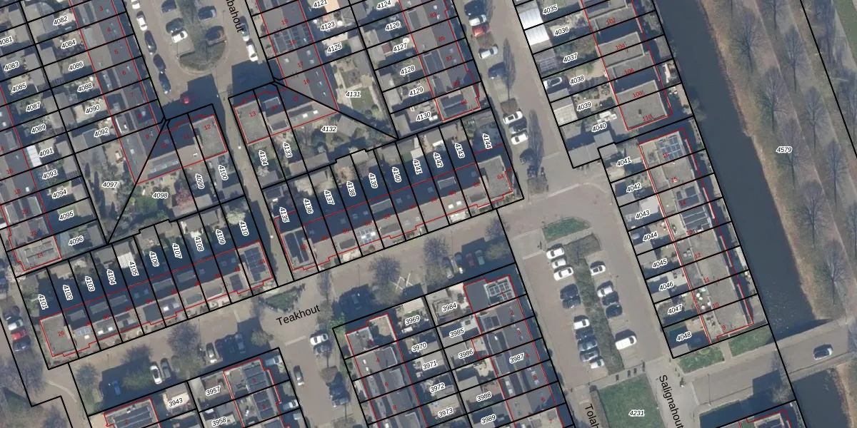 Het perceel waarop Teakhout 58 staat heeft een oppervlakte van 123 m². Dit is een middelgroot perceel. De perceeloppervlakte wordt geregistreerd door het Kadaster. Gedetailleerde informatie over de maten van dit perceel kunt u vinden in het rapport Kadastrale kaart met maatvoering van Teakhout 58.