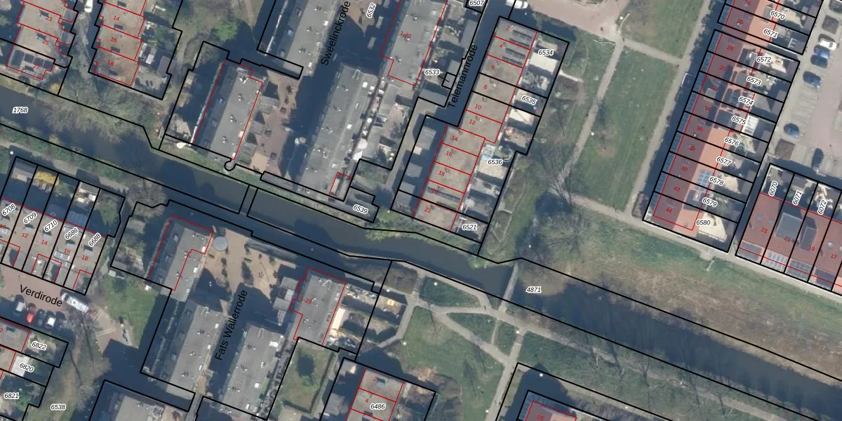 Gebruik de zoekbalk of klik op een perceel voor informatie over de adressen binnen dit perceel.