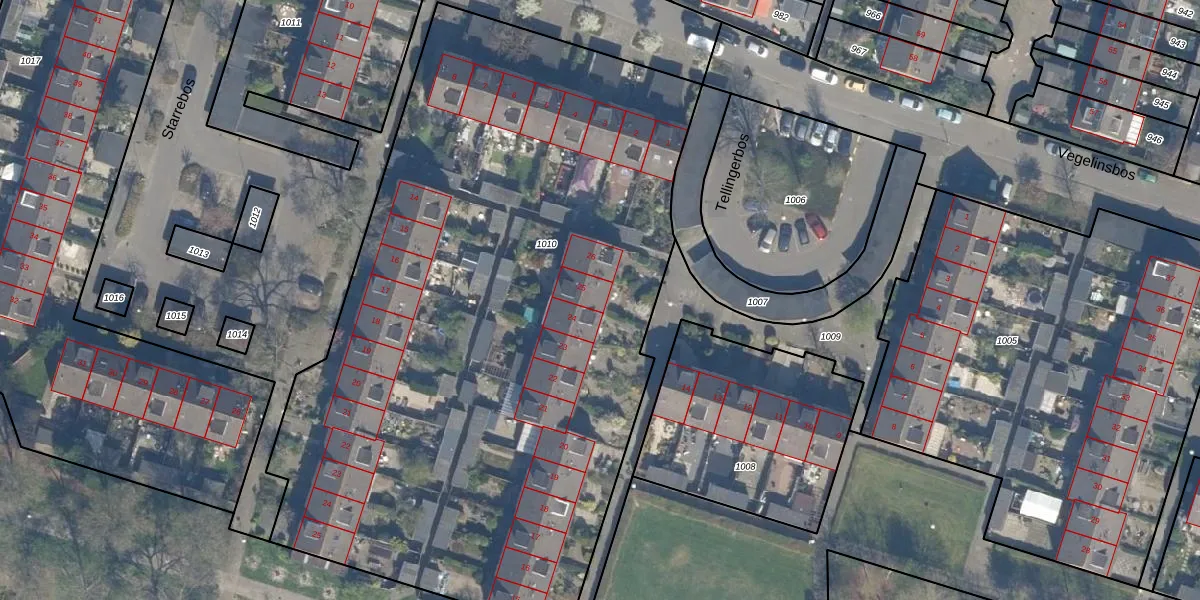 Het perceel waarop Tellingerbos 25 staat heeft een oppervlakte van 4790 m². Dit is een zeer groot perceel. De perceeloppervlakte wordt geregistreerd door het Kadaster. Gedetailleerde informatie over de maten van dit perceel kunt u vinden in het rapport Kadastrale kaart met maatvoering van Tellingerbos 25.