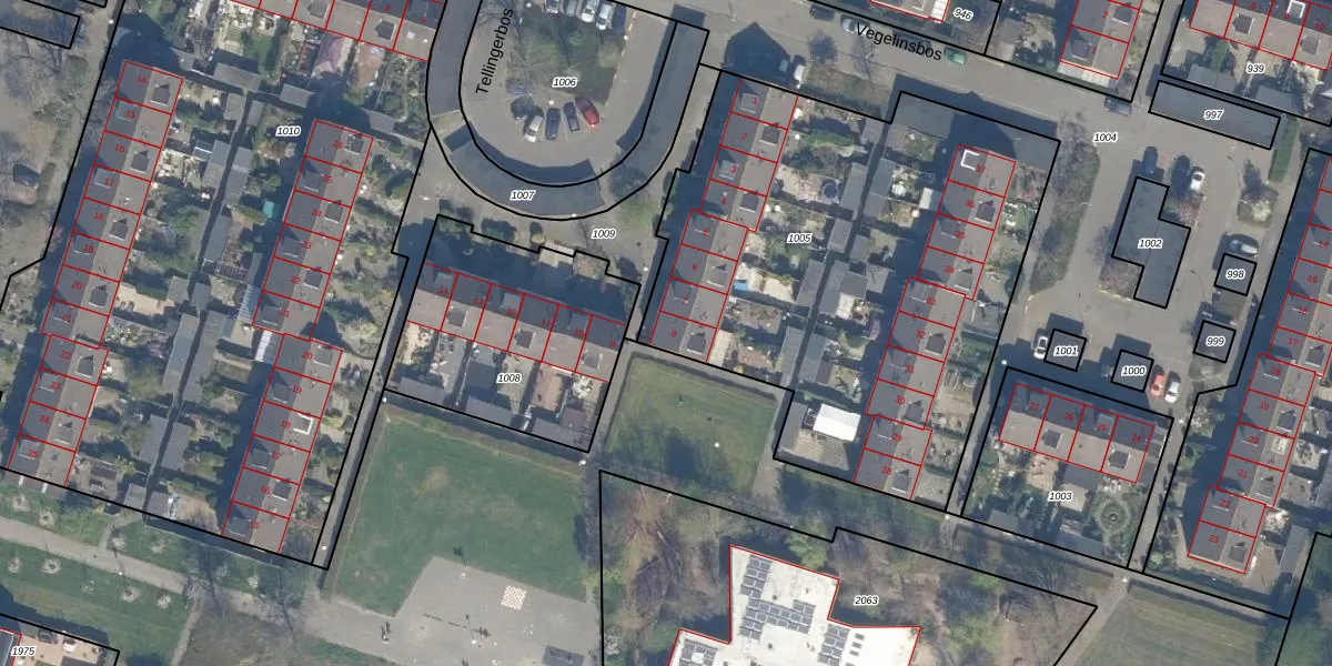 Het perceel waarop Tellingerbos 8 staat heeft een oppervlakte van 2643 m². Dit is een zeer groot perceel. De perceeloppervlakte wordt geregistreerd door het Kadaster. Gedetailleerde informatie over de maten van dit perceel kunt u vinden in het rapport Kadastrale kaart met maatvoering van Tellingerbos 8.