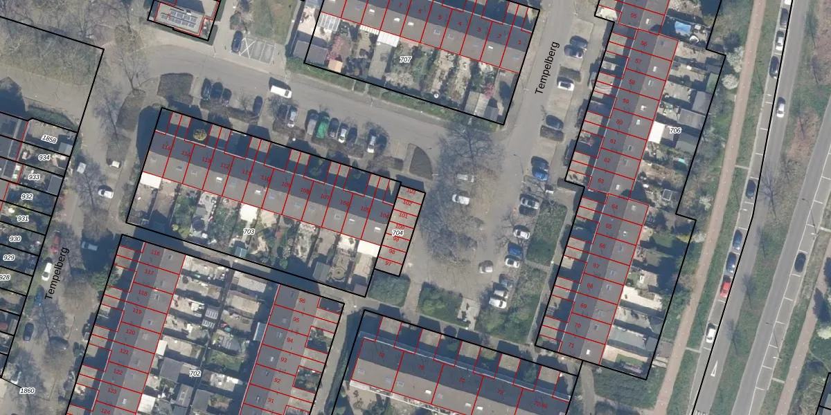 Het perceel waarop Tempelberg 102 staat heeft een oppervlakte van 127 m². Dit is een middelgroot perceel. De perceeloppervlakte wordt geregistreerd door het Kadaster. Gedetailleerde informatie over de maten van dit perceel kunt u vinden in het rapport Kadastrale kaart met maatvoering van Tempelberg 102.