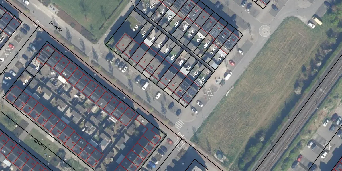 Het perceel waarop Tenerife 16 staat heeft een oppervlakte van 142 m². Dit is een middelgroot perceel. De perceeloppervlakte wordt geregistreerd door het Kadaster. Gedetailleerde informatie over de maten van dit perceel kunt u vinden in het rapport Kadastrale kaart met maatvoering van Tenerife 16.