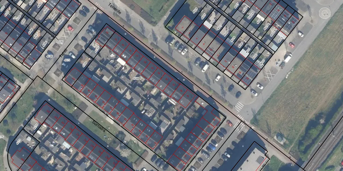Het perceel waarop Tenerife 37 staat heeft een oppervlakte van 3440 m². Dit is een zeer groot perceel. De perceeloppervlakte wordt geregistreerd door het Kadaster. Gedetailleerde informatie over de maten van dit perceel kunt u vinden in het rapport Kadastrale kaart met maatvoering van Tenerife 37.
