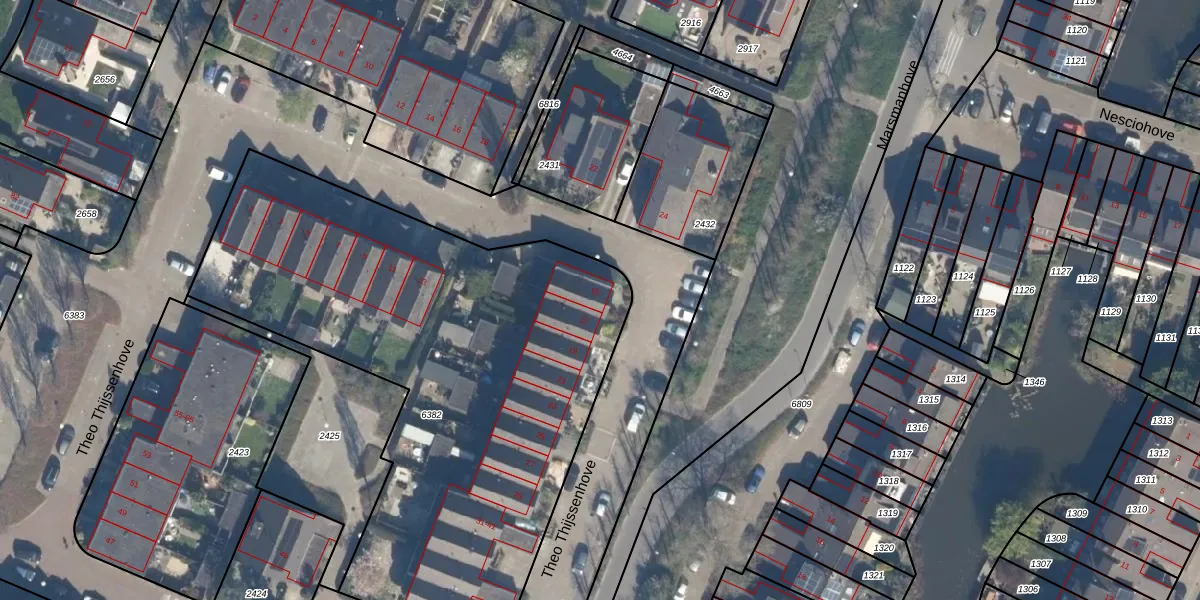 Het perceel waarop Theo Thijssenhove 15 staat heeft een oppervlakte van 2950 m². Dit is een zeer groot perceel. De perceeloppervlakte wordt geregistreerd door het Kadaster. Gedetailleerde informatie over de maten van dit perceel kunt u vinden in het rapport Kadastrale kaart met maatvoering van Theo Thijssenhove 15.