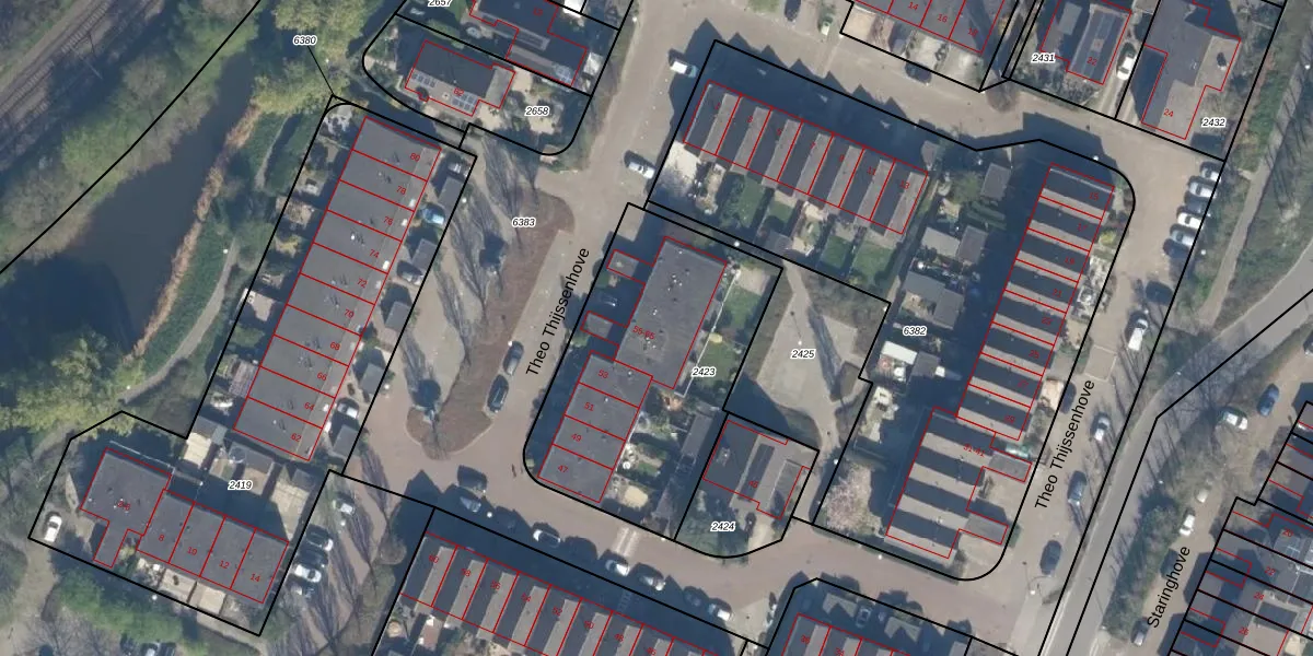 Het perceel waarop Theo Thijssenhove 59 staat heeft een oppervlakte van 1157 m². Dit is een zeer groot perceel. De perceeloppervlakte wordt geregistreerd door het Kadaster. Gedetailleerde informatie over de maten van dit perceel kunt u vinden in het rapport Kadastrale kaart met maatvoering van Theo Thijssenhove 59.