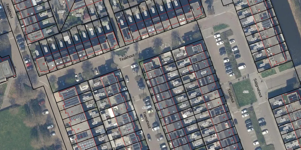 Gebruik de zoekbalk of klik op een perceel voor informatie over de adressen binnen dit perceel.