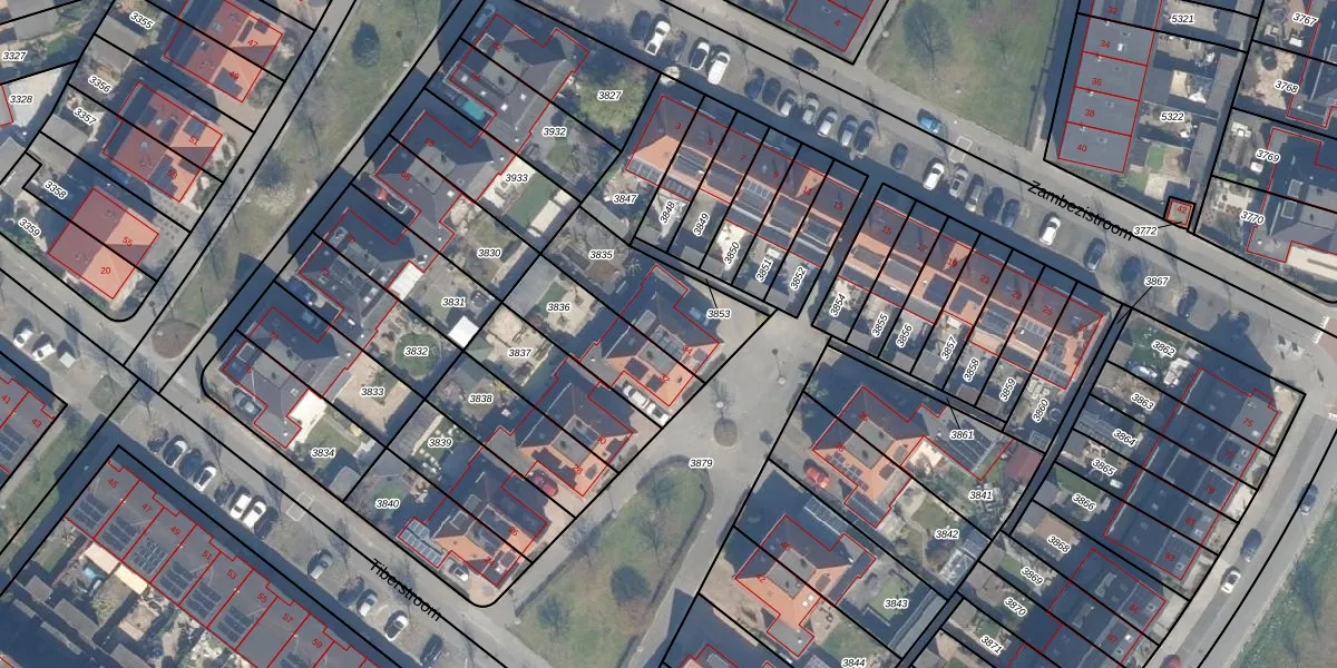 Gebruik de zoekbalk of klik op een perceel voor informatie over de adressen binnen dit perceel.