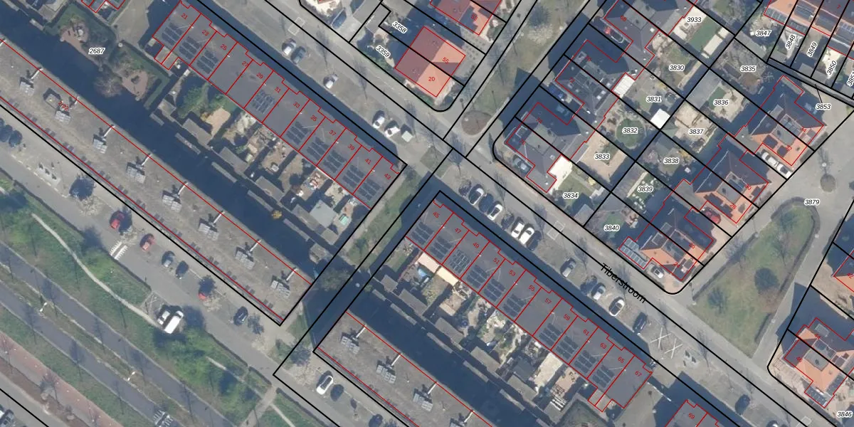 Het perceel waarop Tiberstroom 45 staat heeft een oppervlakte van 6770 m². Dit is een zeer groot perceel. De perceeloppervlakte wordt geregistreerd door het Kadaster. Gedetailleerde informatie over de maten van dit perceel kunt u vinden in het rapport Kadastrale kaart met maatvoering van Tiberstroom 45.