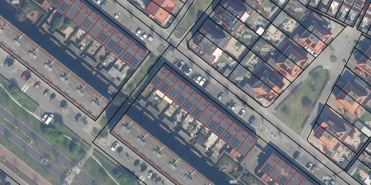 Het perceel waarop Tiberstroom 51 staat heeft een oppervlakte van 6770 m². Dit is een zeer groot perceel. De perceeloppervlakte wordt geregistreerd door het Kadaster. Gedetailleerde informatie over de maten van dit perceel kunt u vinden in het rapport Kadastrale kaart met maatvoering van Tiberstroom 51.