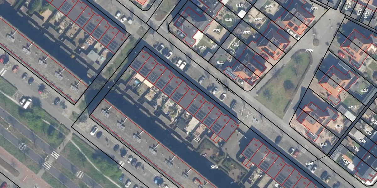 Het perceel waarop Tiberstroom 57 staat heeft een oppervlakte van 6770 m². Dit is een zeer groot perceel. De perceeloppervlakte wordt geregistreerd door het Kadaster. Gedetailleerde informatie over de maten van dit perceel kunt u vinden in het rapport Kadastrale kaart met maatvoering van Tiberstroom 57.
