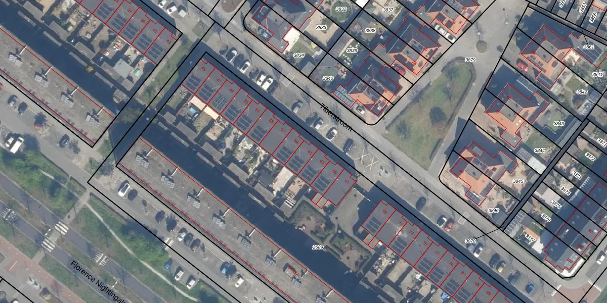 Het perceel waarop Tiberstroom 61 staat heeft een oppervlakte van 6770 m². Dit is een zeer groot perceel. De perceeloppervlakte wordt geregistreerd door het Kadaster. Gedetailleerde informatie over de maten van dit perceel kunt u vinden in het rapport Kadastrale kaart met maatvoering van Tiberstroom 61.
