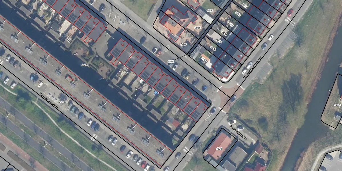 Het perceel waarop Tiberstroom 83 staat heeft een oppervlakte van 6770 m². Dit is een zeer groot perceel. De perceeloppervlakte wordt geregistreerd door het Kadaster. Gedetailleerde informatie over de maten van dit perceel kunt u vinden in het rapport Kadastrale kaart met maatvoering van Tiberstroom 83.