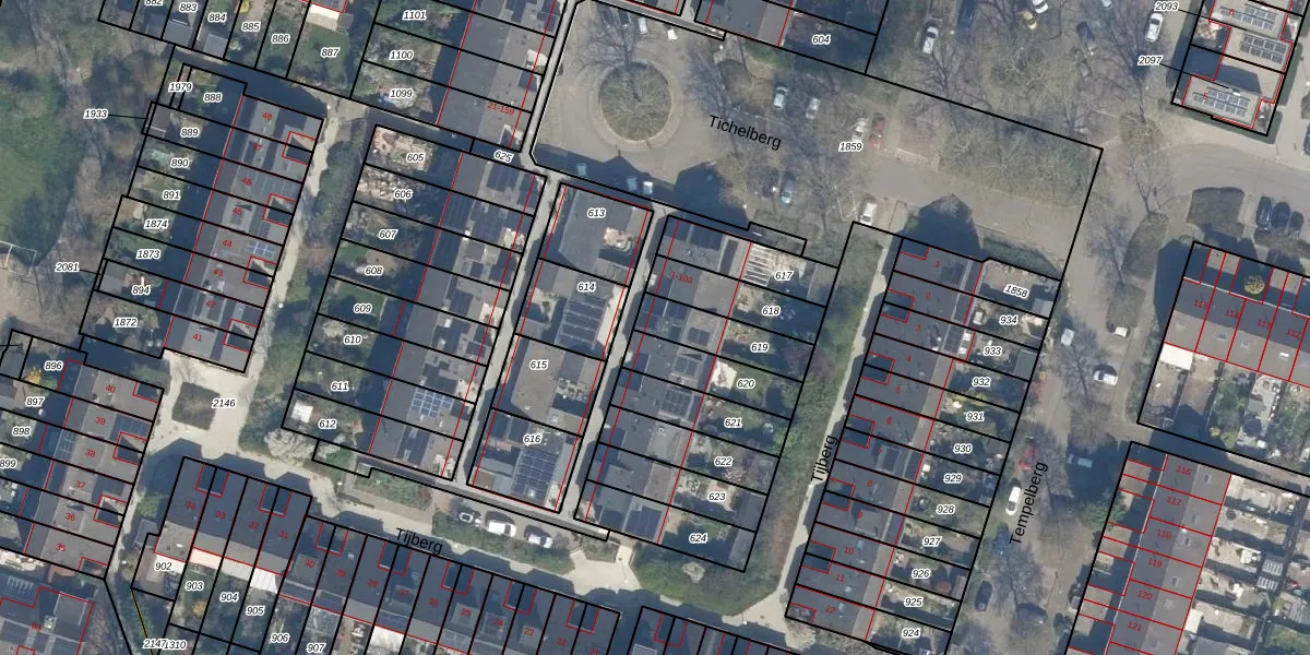 Het perceel waarop Tichelberg 50 staat heeft een oppervlakte van 163 m². Dit is een middelgroot perceel. De perceeloppervlakte wordt geregistreerd door het Kadaster. Gedetailleerde informatie over de maten van dit perceel kunt u vinden in het rapport Kadastrale kaart met maatvoering van Tichelberg 50.