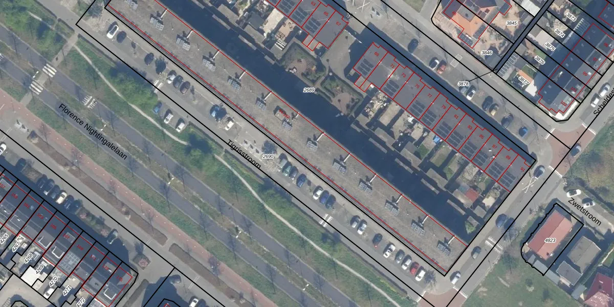 Tigrisstroom 120 is gelegen op kadastraal perceel ZWD01F2689. Deze kadastrale aanduiding is uniek en wordt gebruikt door het Kadaster om eigendomsrechten en andere zakelijke rechten vast te leggen. Het perceel maakt onderdeel uit van de kadastrale gemeente Zegwaard.