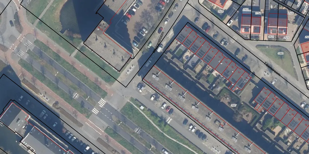 Het perceel waarop Tigrisstroom 26 staat heeft een oppervlakte van 6253 m². Dit is een zeer groot perceel. De perceeloppervlakte wordt geregistreerd door het Kadaster. Gedetailleerde informatie over de maten van dit perceel kunt u vinden in het rapport Kadastrale kaart met maatvoering van Tigrisstroom 26.