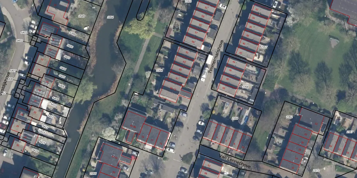 Het perceel waarop Timmermanshove 71 staat heeft een oppervlakte van 1676 m². Dit is een zeer groot perceel. De perceeloppervlakte wordt geregistreerd door het Kadaster. Gedetailleerde informatie over de maten van dit perceel kunt u vinden in het rapport Kadastrale kaart met maatvoering van Timmermanshove 71.