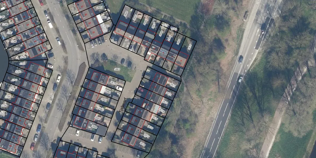 Het perceel waarop Tjalkwerf 9 staat heeft een oppervlakte van 169 m². Dit is een middelgroot perceel. De perceeloppervlakte wordt geregistreerd door het Kadaster. Gedetailleerde informatie over de maten van dit perceel kunt u vinden in het rapport Kadastrale kaart met maatvoering van Tjalkwerf 9.