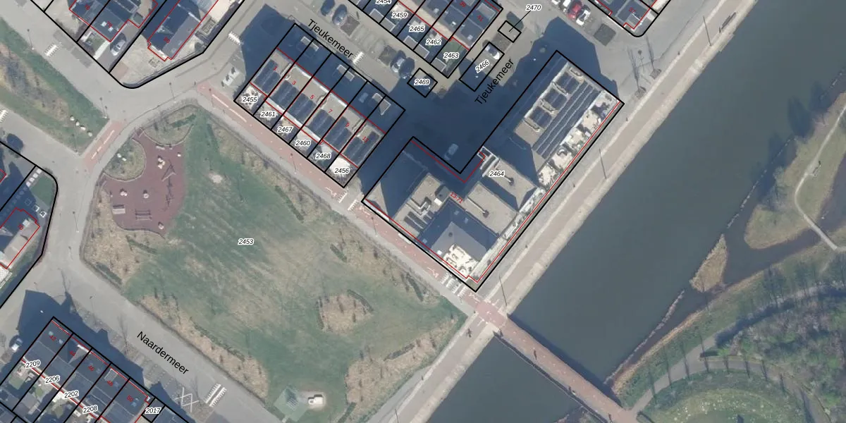 Het perceel waarop Tjeukemeer 45 staat heeft een oppervlakte van 1425 m². Dit is een zeer groot perceel. De perceeloppervlakte wordt geregistreerd door het Kadaster. Gedetailleerde informatie over de maten van dit perceel kunt u vinden in het rapport Kadastrale kaart met maatvoering van Tjeukemeer 45.