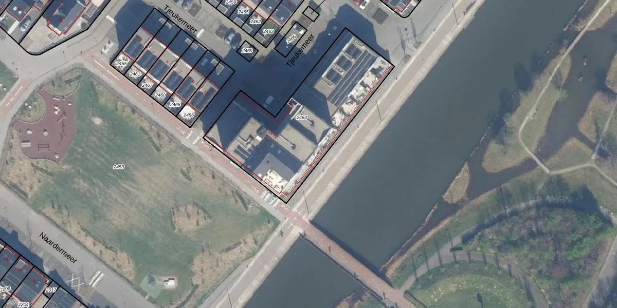 Het perceel waarop Tjeukemeer 57 staat heeft een oppervlakte van 1425 m². Dit is een zeer groot perceel. De perceeloppervlakte wordt geregistreerd door het Kadaster. Gedetailleerde informatie over de maten van dit perceel kunt u vinden in het rapport Kadastrale kaart met maatvoering van Tjeukemeer 57.