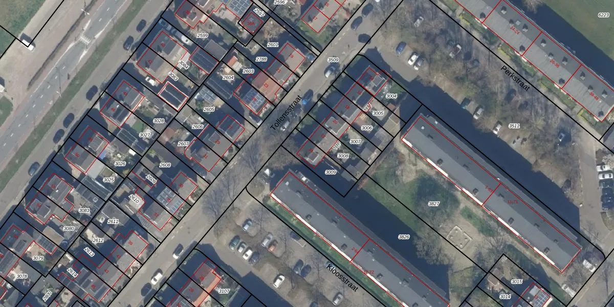 Gebruik de zoekbalk of klik op een perceel voor informatie over de adressen binnen dit perceel.