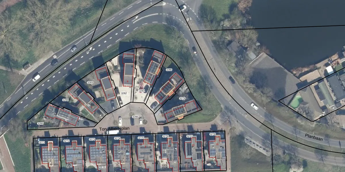 Gebruik de zoekbalk of klik op een perceel voor informatie over de adressen binnen dit perceel.