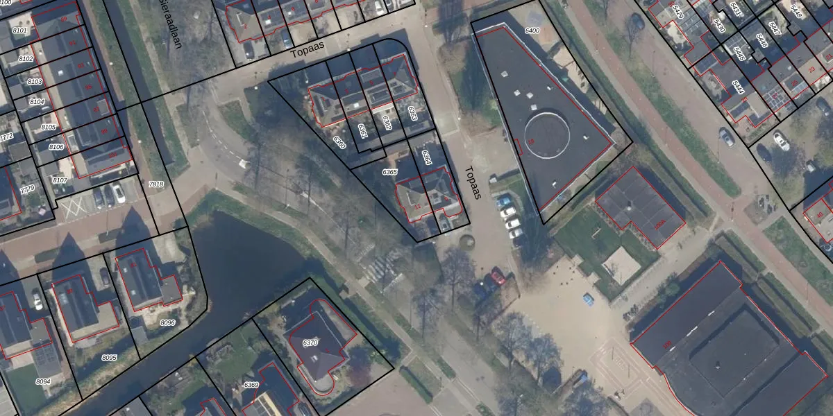 Het perceel waarop Topaas 11 staat heeft een oppervlakte van 250 m². Dit is een middelgroot perceel. De perceeloppervlakte wordt geregistreerd door het Kadaster. Gedetailleerde informatie over de maten van dit perceel kunt u vinden in het rapport Kadastrale kaart met maatvoering van Topaas 11.