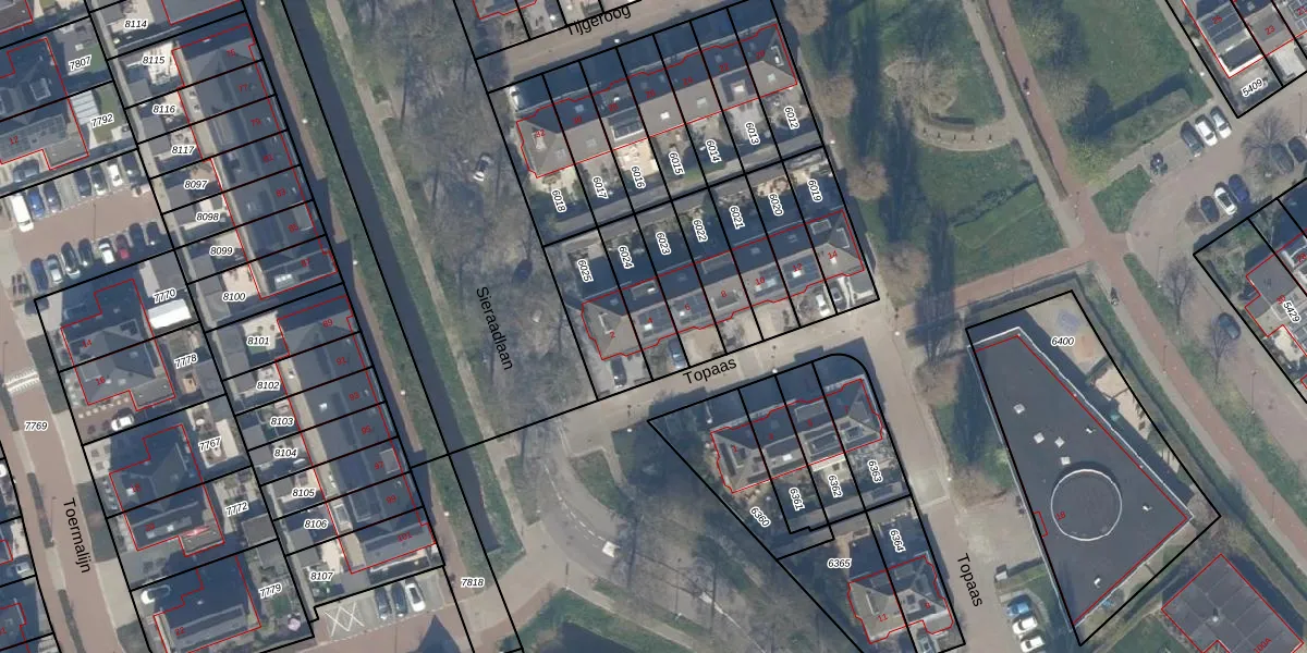 Het perceel waarop Topaas 4 staat heeft een oppervlakte van 150 m². Dit is een middelgroot perceel. De perceeloppervlakte wordt geregistreerd door het Kadaster. Gedetailleerde informatie over de maten van dit perceel kunt u vinden in het rapport Kadastrale kaart met maatvoering van Topaas 4.