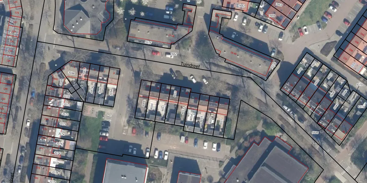 Het perceel waarop Tuindreef 19 staat heeft een oppervlakte van 118 m². Dit is een middelgroot perceel. De perceeloppervlakte wordt geregistreerd door het Kadaster. Gedetailleerde informatie over de maten van dit perceel kunt u vinden in het rapport Kadastrale kaart met maatvoering van Tuindreef 19.