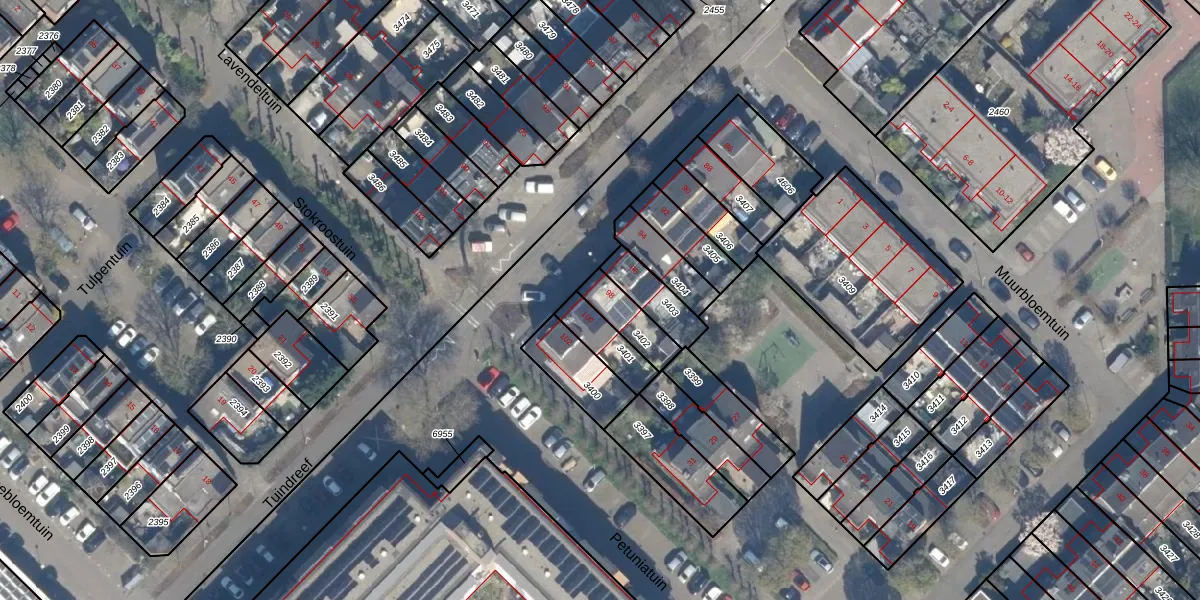 Gebruik de zoekbalk of klik op een perceel voor informatie over de adressen binnen dit perceel.