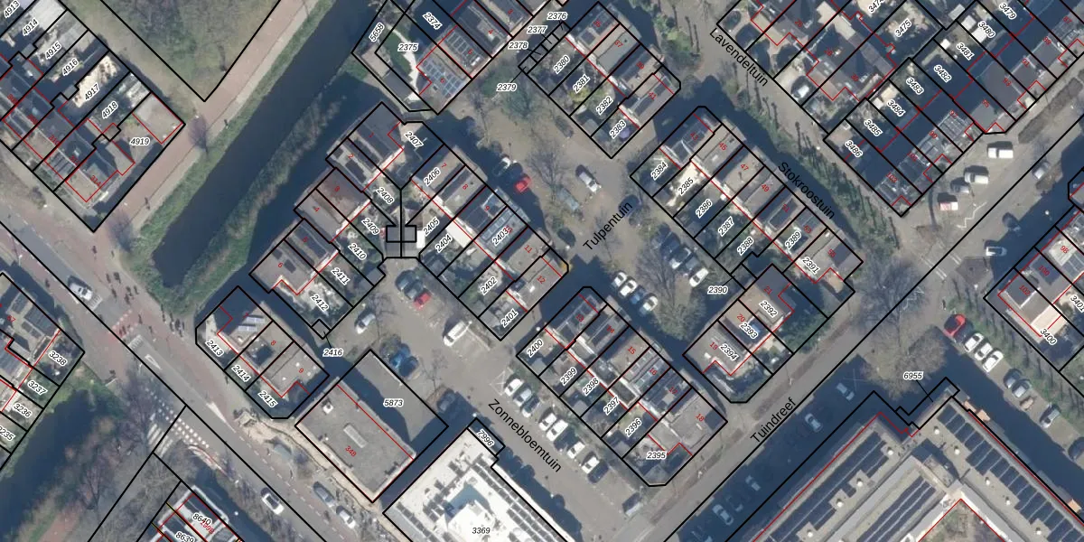 Gebruik de zoekbalk of klik op een perceel voor informatie over de adressen binnen dit perceel.