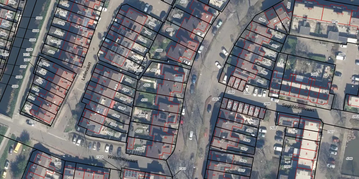 Gebruik de zoekbalk of klik op een perceel voor informatie over de adressen binnen dit perceel.