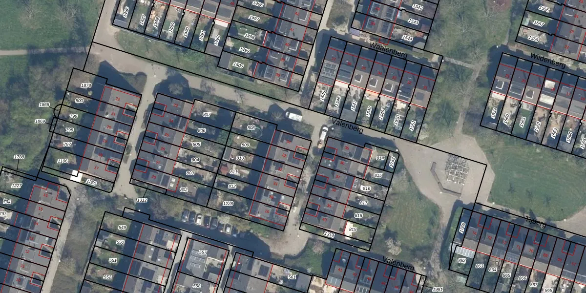 Het perceel waarop Valenberg 34 staat heeft een oppervlakte van 169 m². Dit is een middelgroot perceel. De perceeloppervlakte wordt geregistreerd door het Kadaster. Gedetailleerde informatie over de maten van dit perceel kunt u vinden in het rapport Kadastrale kaart met maatvoering van Valenberg 34.