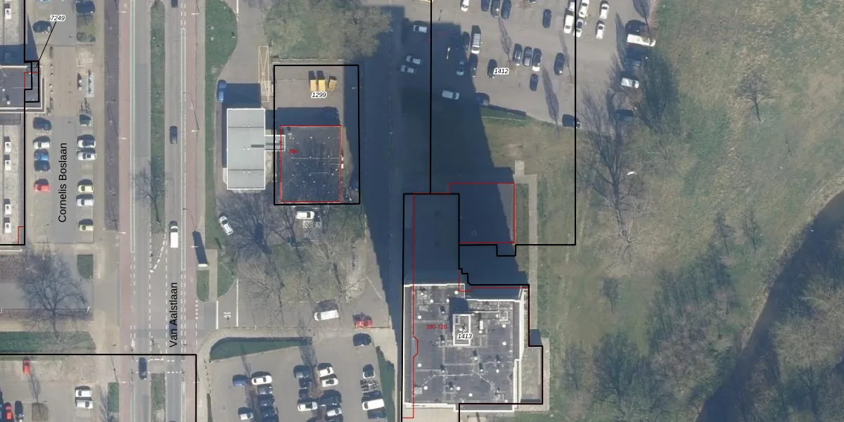 Het perceel waarop Van Aalstlaan 400 staat heeft een oppervlakte van 1331 m². Dit is een zeer groot perceel. De perceeloppervlakte wordt geregistreerd door het Kadaster. Gedetailleerde informatie over de maten van dit perceel kunt u vinden in het rapport Kadastrale kaart met maatvoering van Van Aalstlaan 400.