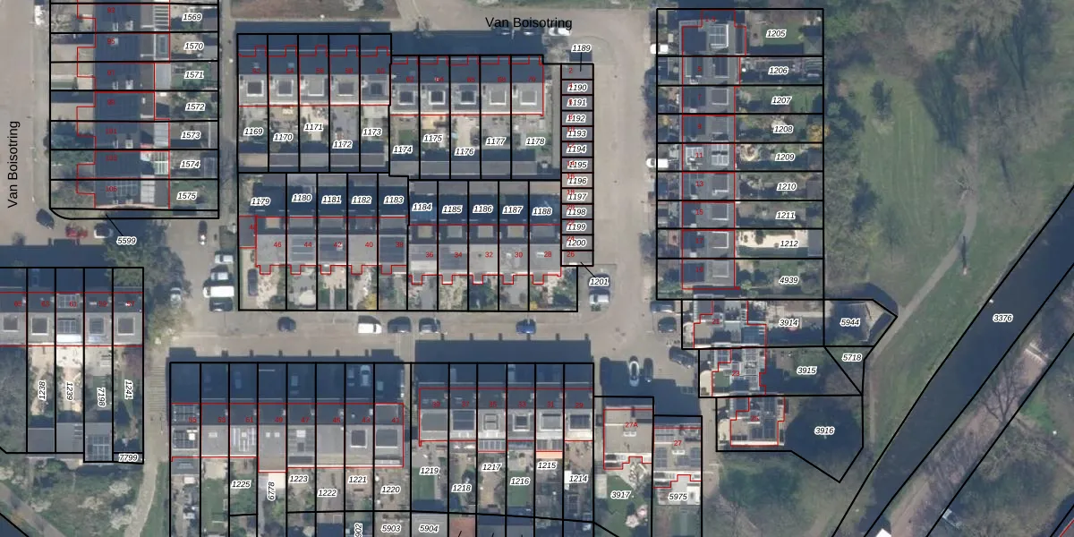 Het perceel waarop Van Boisotring 28 staat heeft een oppervlakte van 167 m². Dit is een middelgroot perceel. De perceeloppervlakte wordt geregistreerd door het Kadaster. Gedetailleerde informatie over de maten van dit perceel kunt u vinden in het rapport Kadastrale kaart met maatvoering van Van Boisotring 28.
