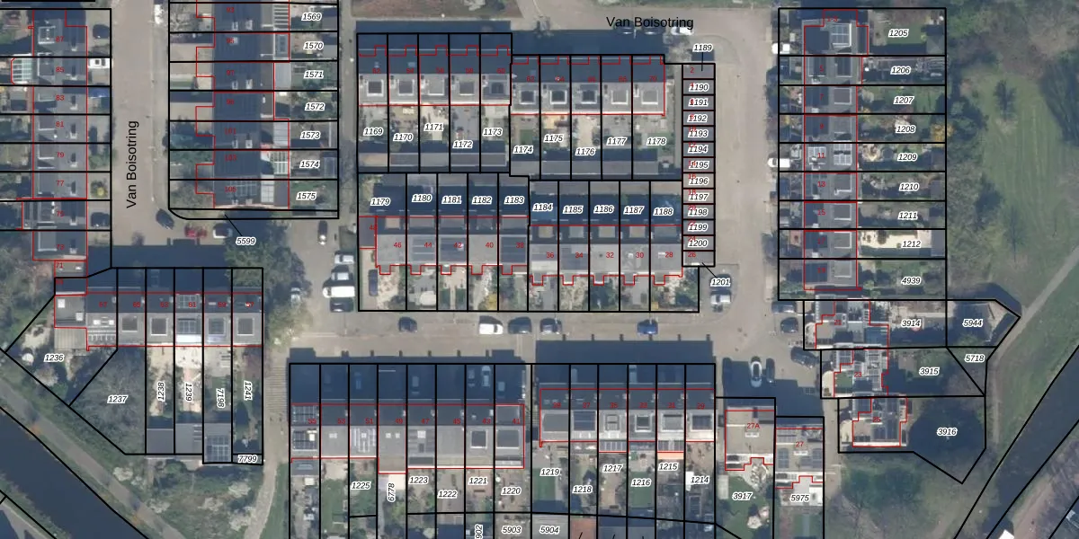 Gebruik de zoekbalk of klik op een perceel voor informatie over de adressen binnen dit perceel.