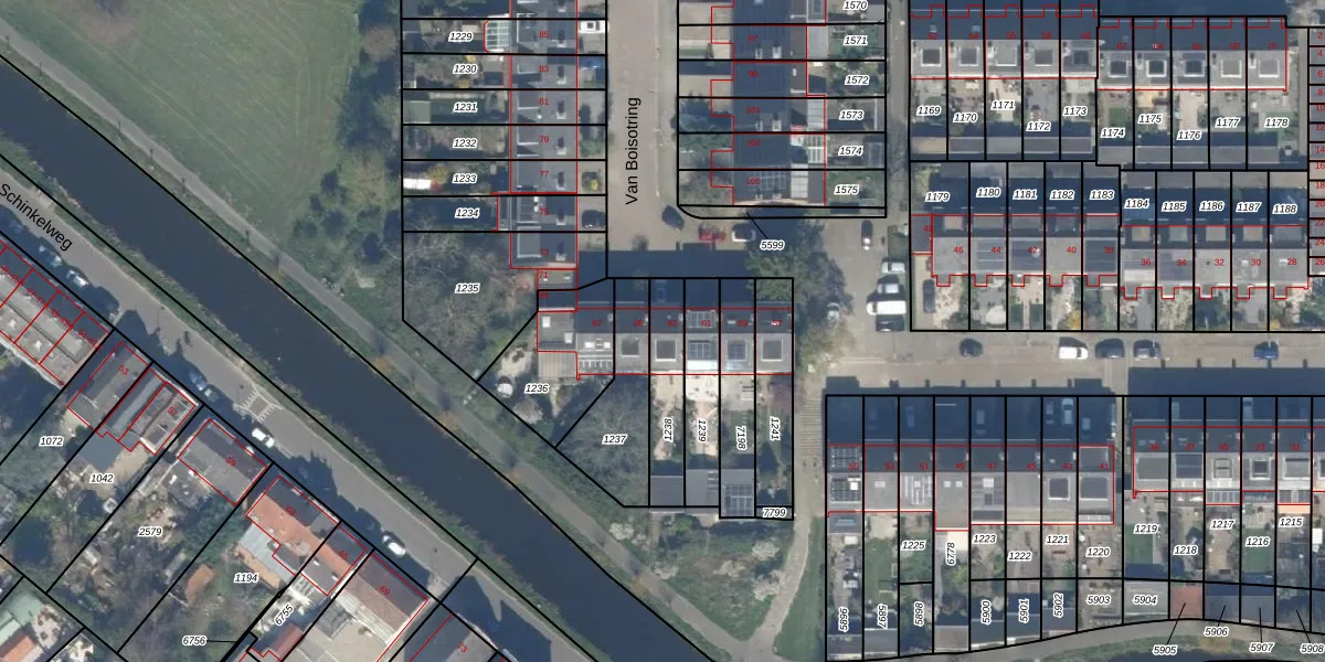 Het perceel waarop Van Boisotring 63 staat heeft een oppervlakte van 185 m². Dit is een middelgroot perceel. De perceeloppervlakte wordt geregistreerd door het Kadaster. Gedetailleerde informatie over de maten van dit perceel kunt u vinden in het rapport Kadastrale kaart met maatvoering van Van Boisotring 63.