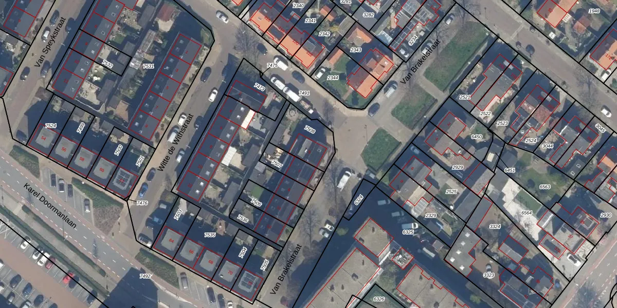 Gebruik de zoekbalk of klik op een perceel voor informatie over de adressen binnen dit perceel.