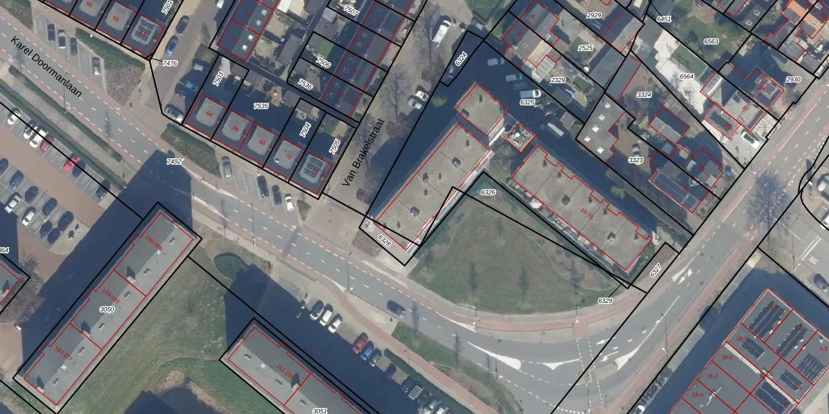 Het perceel waarop Van Brakelstraat 66 staat heeft een oppervlakte van 1890 m². Dit is een zeer groot perceel. De perceeloppervlakte wordt geregistreerd door het Kadaster. Gedetailleerde informatie over de maten van dit perceel kunt u vinden in het rapport Kadastrale kaart met maatvoering van Van Brakelstraat 66.