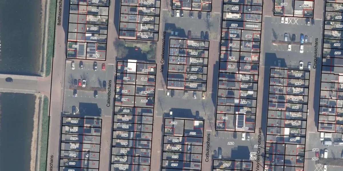 Het perceel waarop Van Coehoornschans 14 staat heeft een oppervlakte van 116 m². Dit is een middelgroot perceel. De perceeloppervlakte wordt geregistreerd door het Kadaster. Gedetailleerde informatie over de maten van dit perceel kunt u vinden in het rapport Kadastrale kaart met maatvoering van Van Coehoornschans 14.