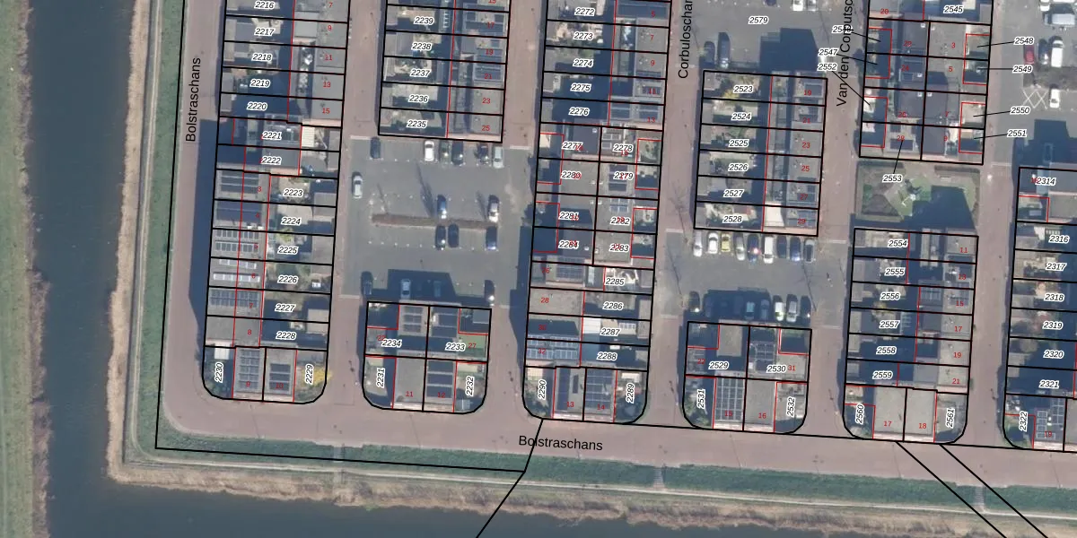 Gebruik de zoekbalk of klik op een perceel voor informatie over de adressen binnen dit perceel.