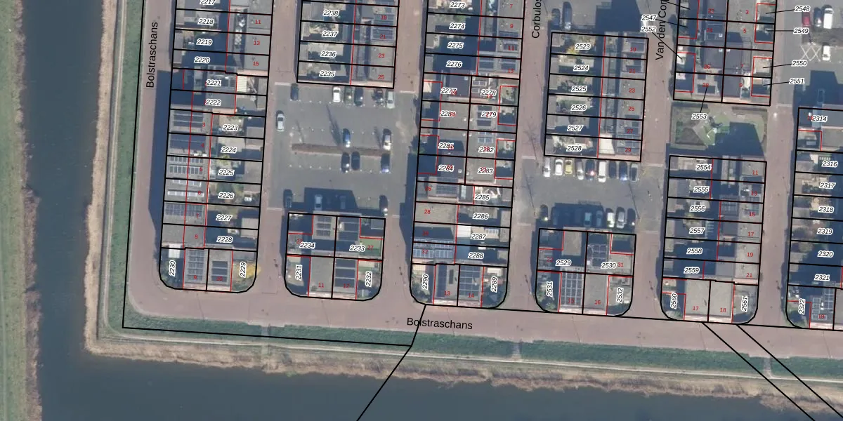 Gebruik de zoekbalk of klik op een perceel voor informatie over de adressen binnen dit perceel.