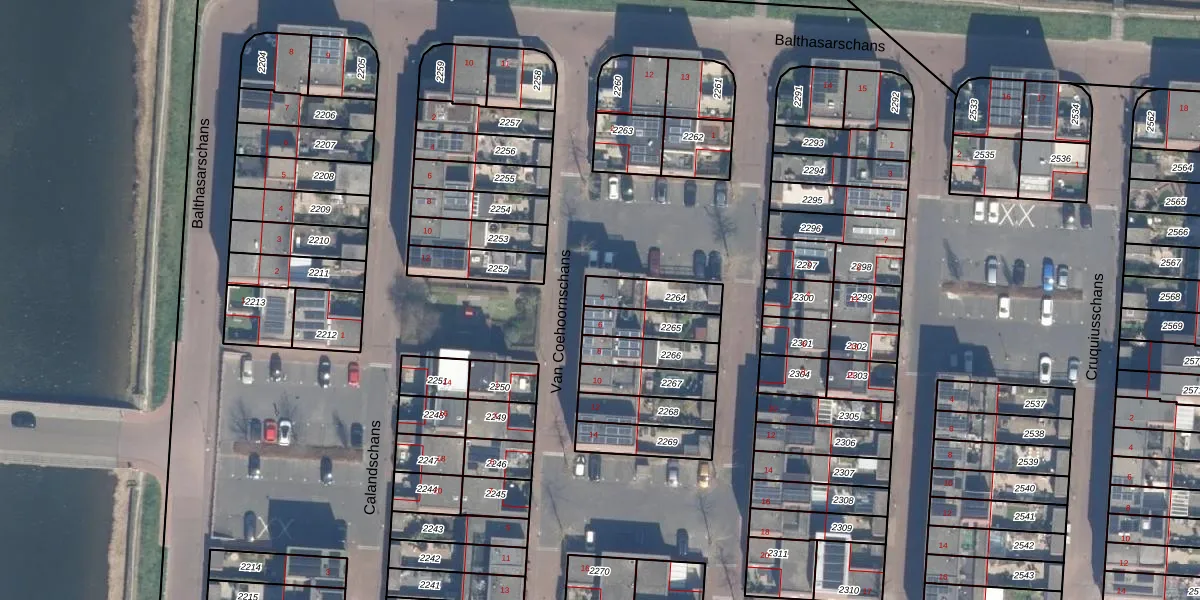 Het perceel waarop Van Coehoornschans 4 staat heeft een oppervlakte van 116 m². Dit is een middelgroot perceel. De perceeloppervlakte wordt geregistreerd door het Kadaster. Gedetailleerde informatie over de maten van dit perceel kunt u vinden in het rapport Kadastrale kaart met maatvoering van Van Coehoornschans 4.