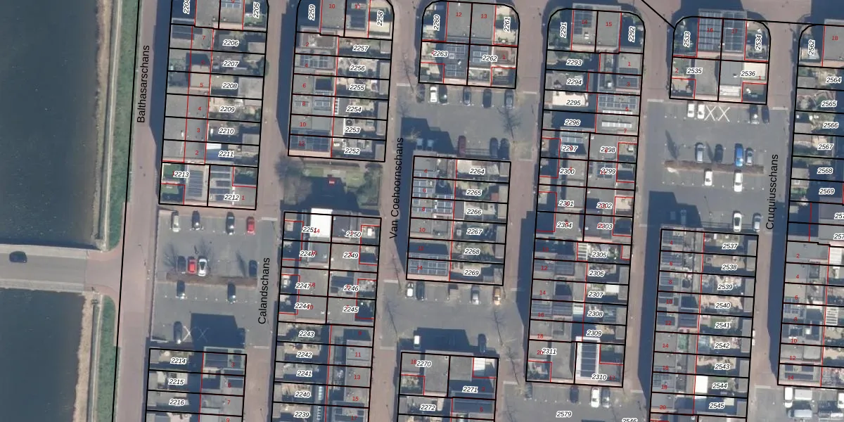 Gebruik de zoekbalk of klik op een perceel voor informatie over de adressen binnen dit perceel.