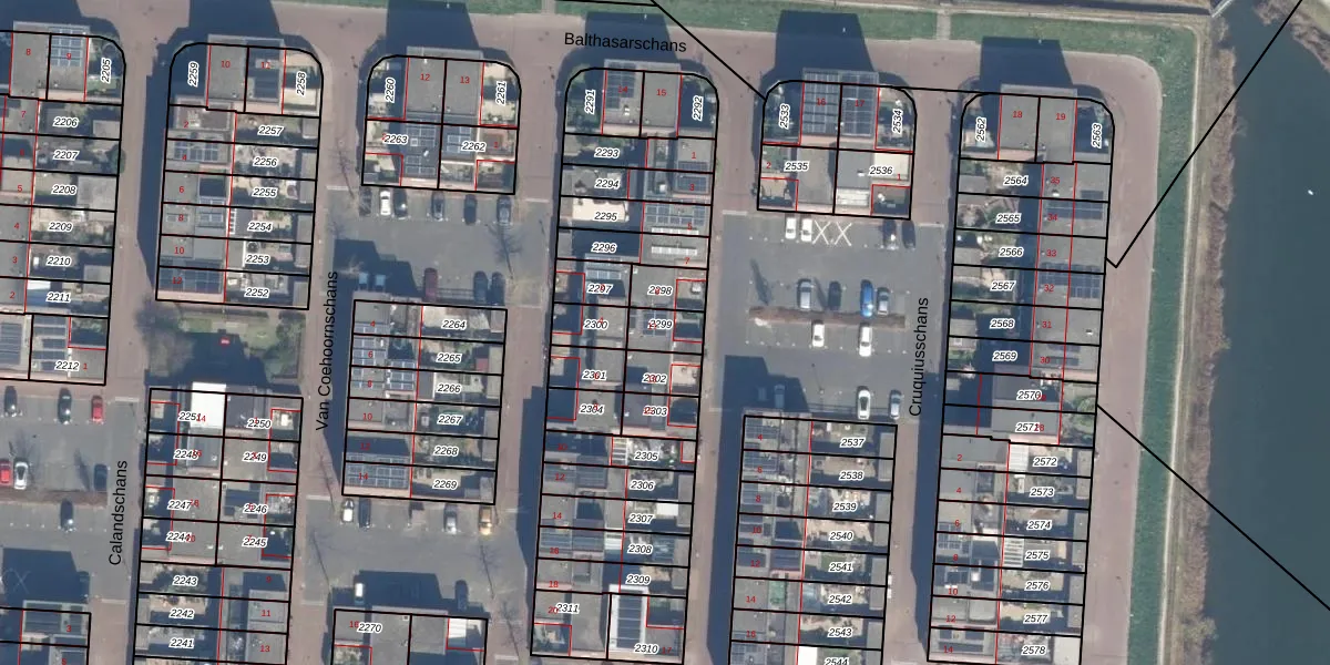 Gebruik de zoekbalk of klik op een perceel voor informatie over de adressen binnen dit perceel.