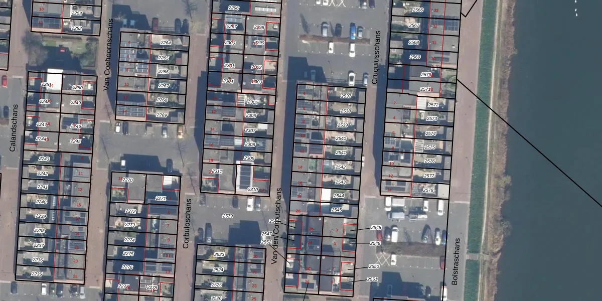 Gebruik de zoekbalk of klik op een perceel voor informatie over de adressen binnen dit perceel.