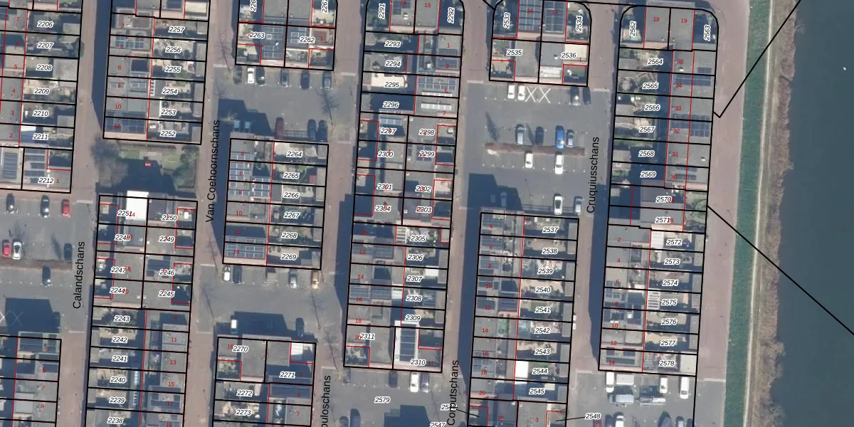 Het perceel waarop Van den Corputschans 15 staat heeft een oppervlakte van 76 m². Dit is een klein perceel. De perceeloppervlakte wordt geregistreerd door het Kadaster. Gedetailleerde informatie over de maten van dit perceel kunt u vinden in het rapport Kadastrale kaart met maatvoering van Van den Corputschans 15.